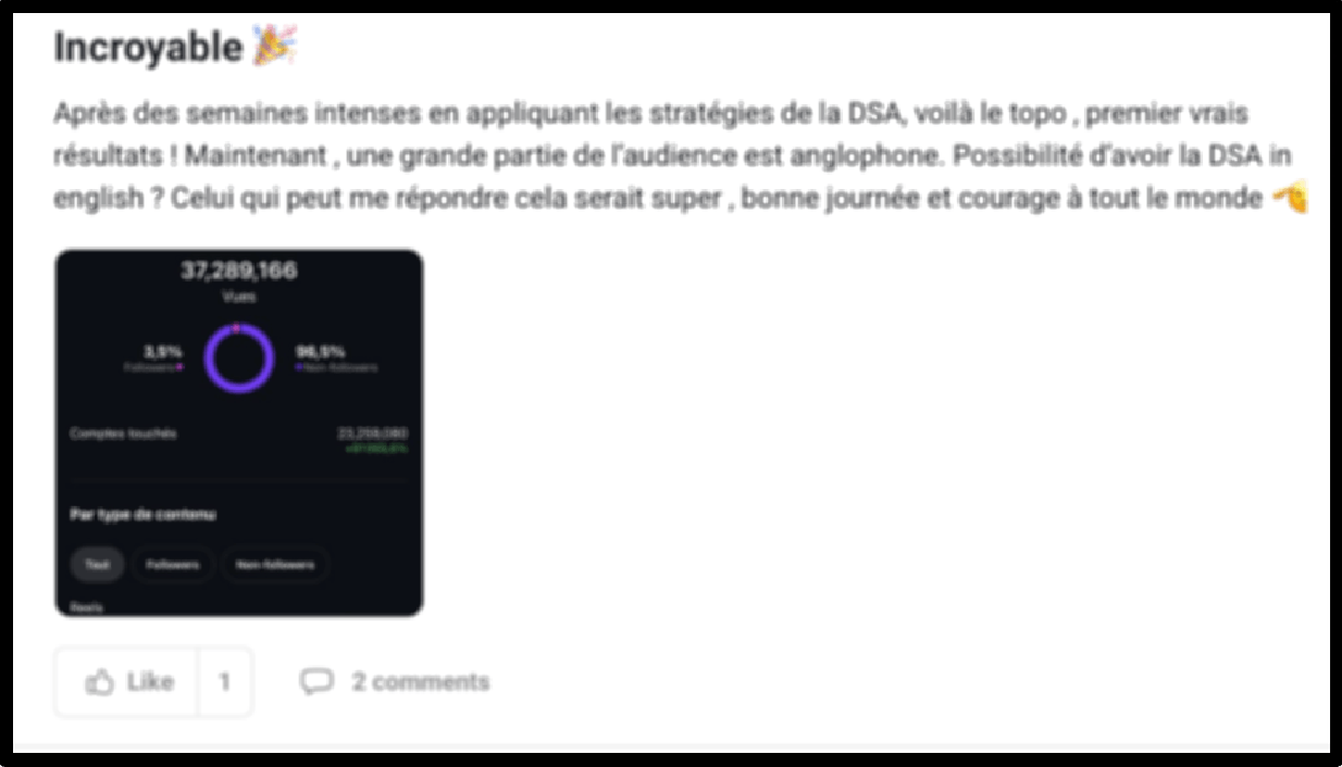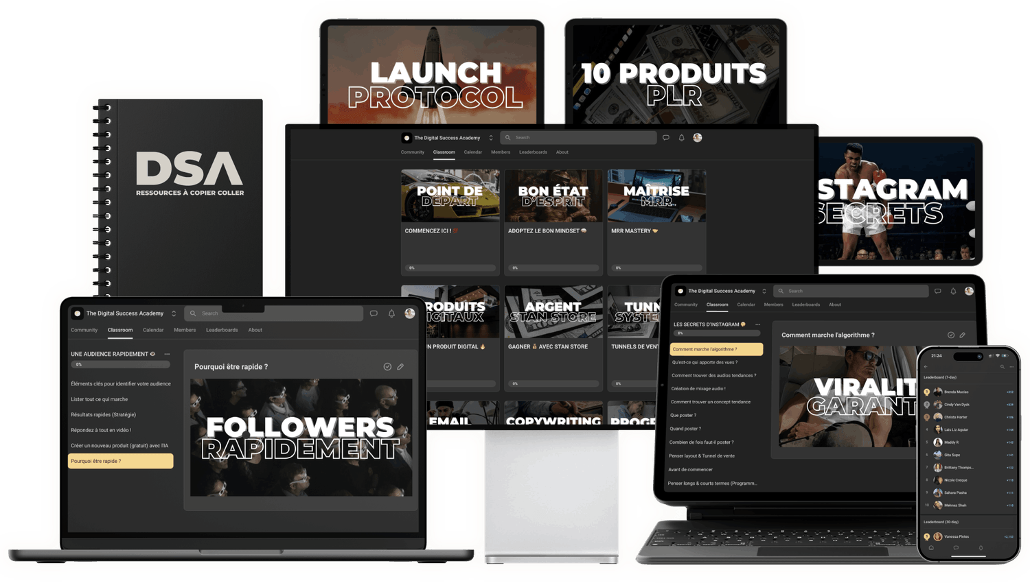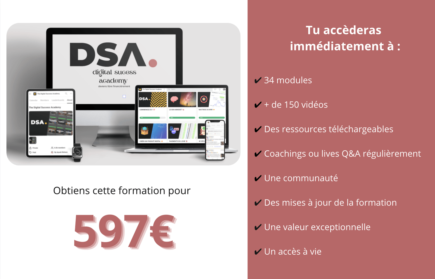 Avec la DSA, tu n'as pas besoin de créer un produit ou même de réfléchir à des plans de marketing et d'automatisation, tout est inclus pour te faire gagner tes premiers milliers d'euros rapidement.