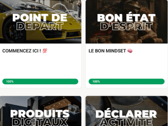 Que vous souhaitez vendre des produits déjà faits, créer vos propres produits numériques ou explorer le marketing d'affiliation, tout y es enseignés.