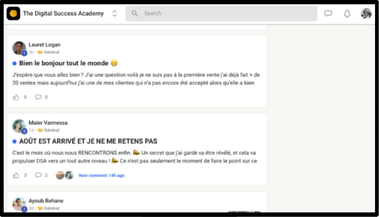 J'ai recherché des formations en ligne et j'y ai découvert la "Digital Sucess Academy". J'ai commencé par m'y intéresser, jusqu'au jour où j'ai décidé de me lancer à mon tour.
