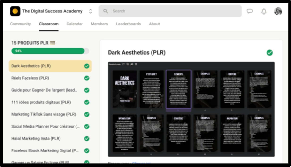 Dans la DSA, tu bénéficies de 15 produits PLR prêts à l’emploi, conçus pour toi et tes futurs clients, que tu peux revendre à des prix attractifs allant de 47 € à 197 €.