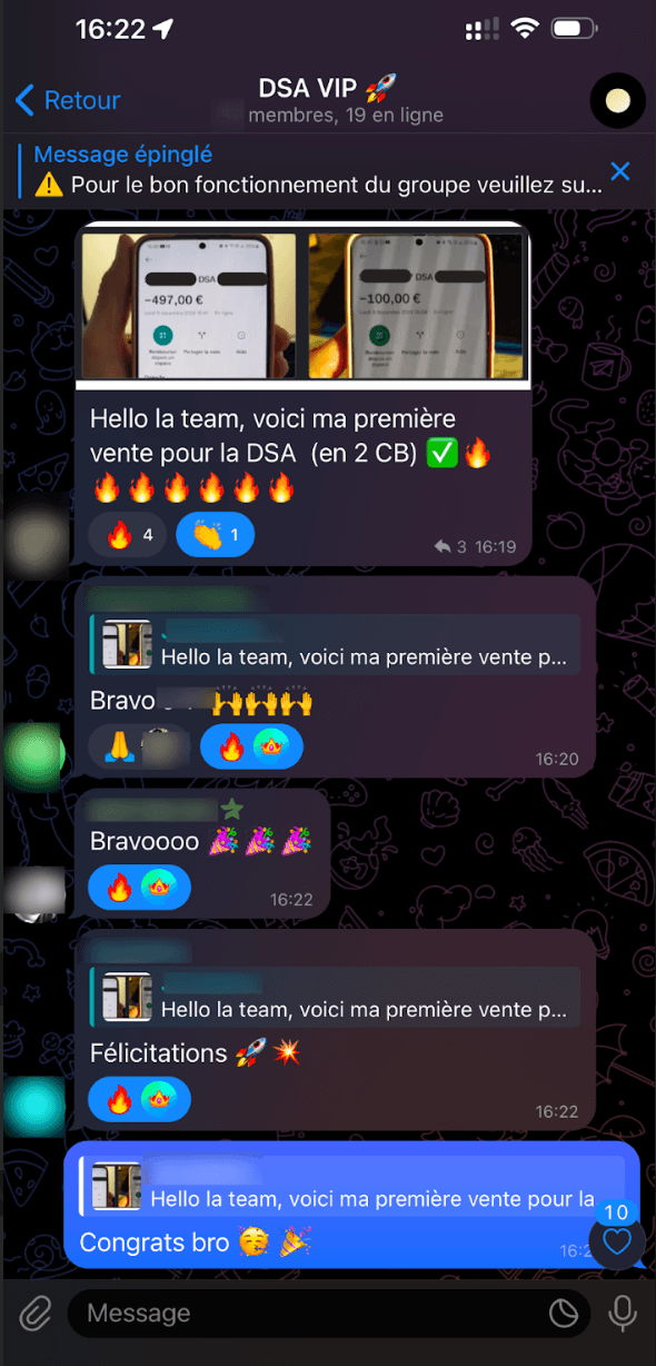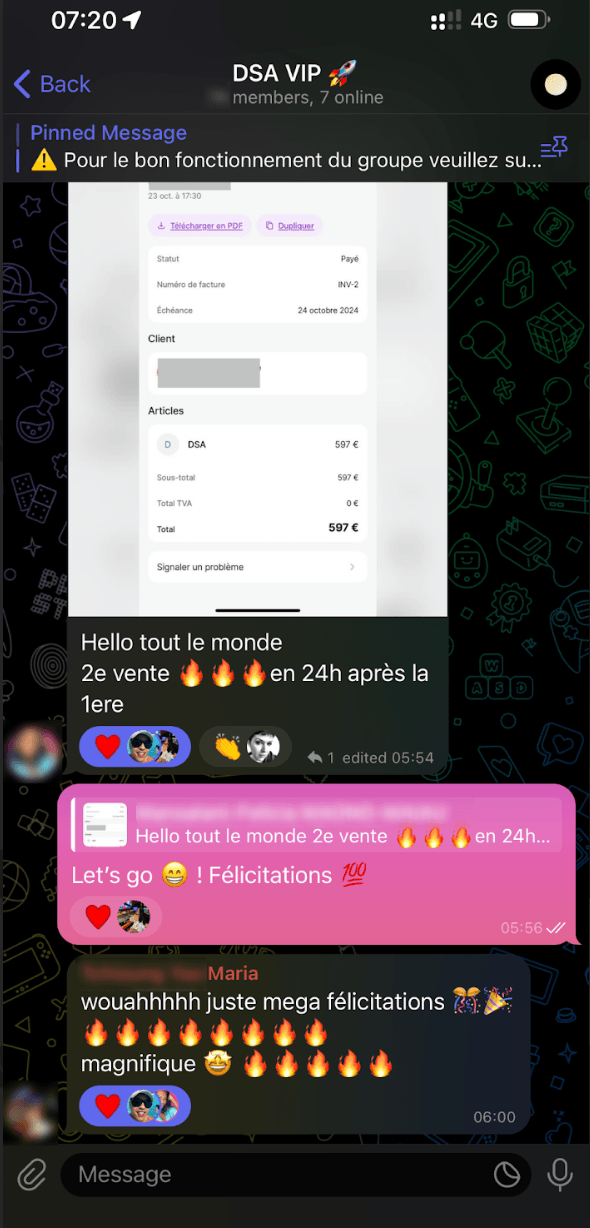 Mais cette formation a été un véritable déclic. J'y ai tout appris de A à Z, j'ai osé me lancer et j'ai même générer mes premiers revenus dès le premier mois.